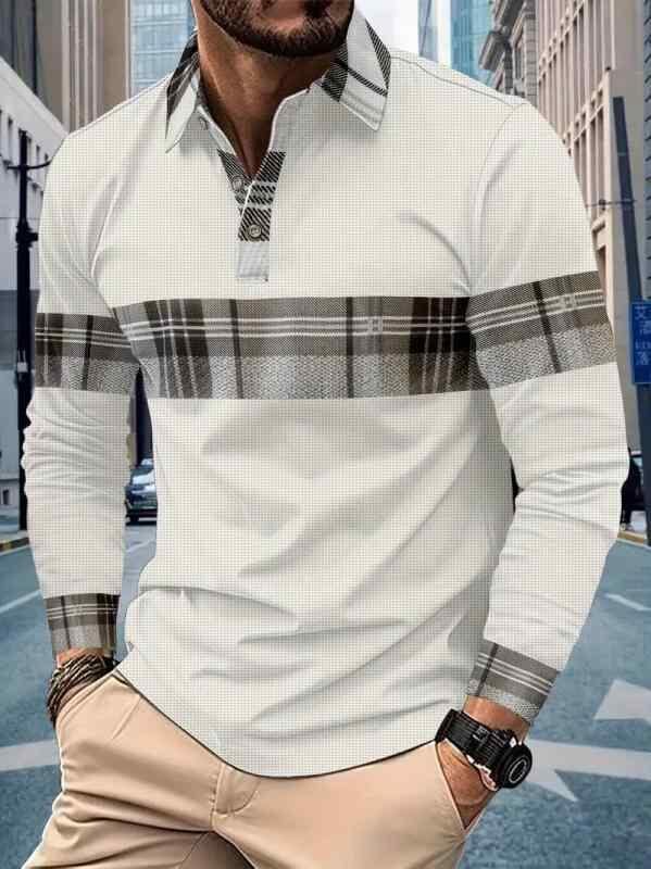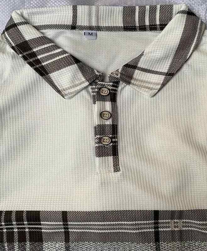 ポロシャツ メンズ 長袖 ゆったり 薄手 ポリエステル ワッフル 切り替え チェック柄 ボタン プリント カジュアル 春秋 通気性 ウォッシャブル 形態安定
