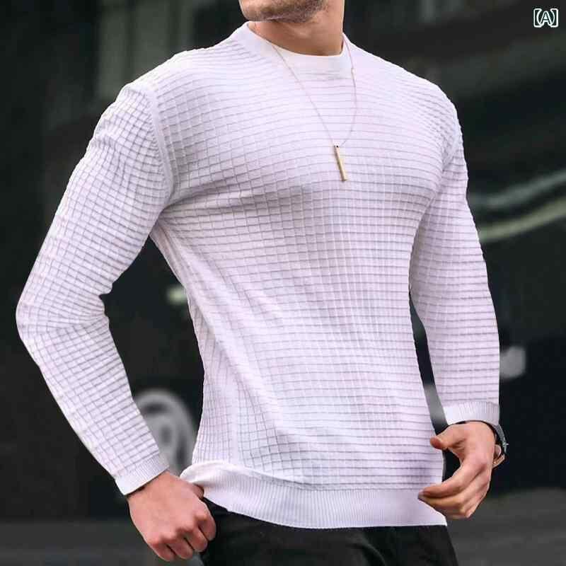 ニットシャツ メンズ 秋冬 ワッフル生地 綿 クルーネック 長袖 プルオーバー ルーズフィット カジュアル スポーツ 無地 通気性 抗菌 吸湿速乾 普段使い
