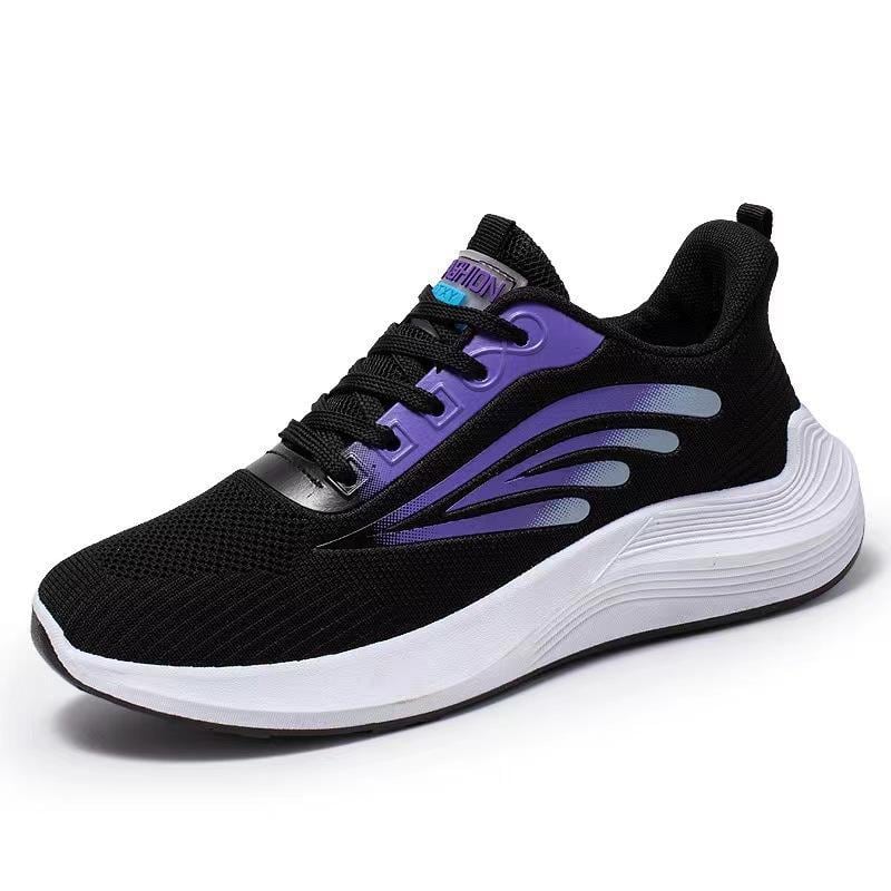 シューズ レディース スニーカー 厚底 フライニット メッシュ 通気性 軽量 快適 ランニング ウォーキング 旅行 普段使い スポーツ カジュアル 黒 紫 オレンジ