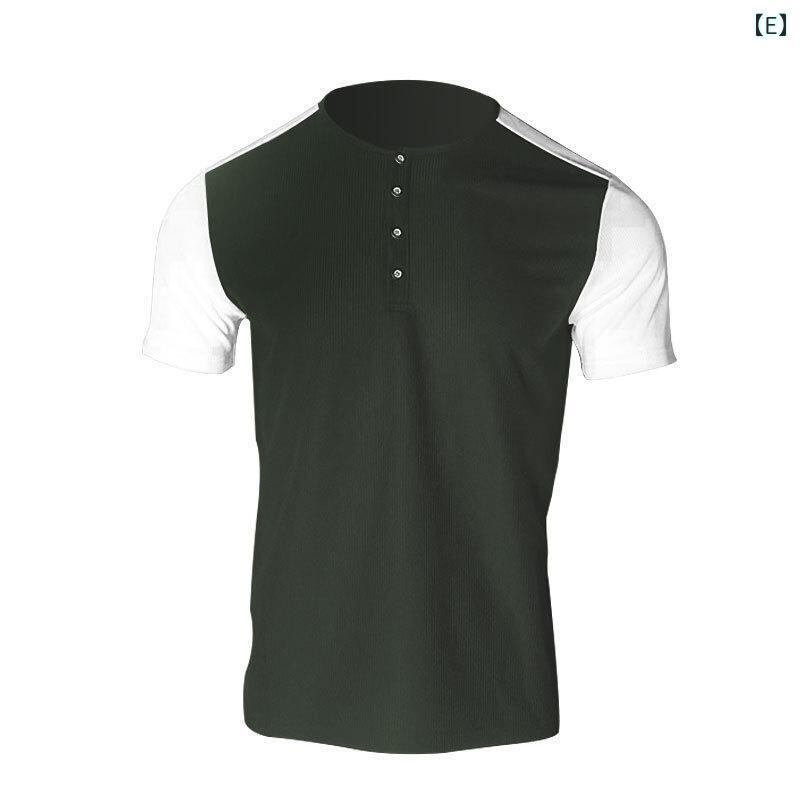 シャツ メンズ オーバーサイズ ヘビーウェイト ワッフル ポリエステル ヘンリーネック 半袖 切り替え 無地 通気性 吸湿速乾 カジュアル 夏