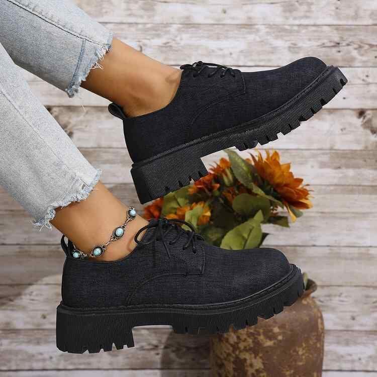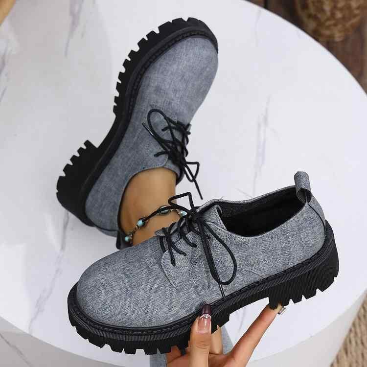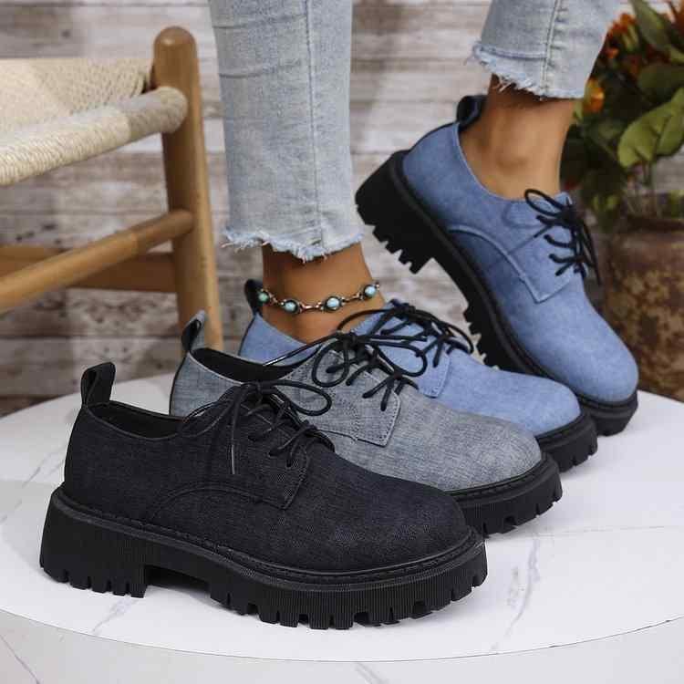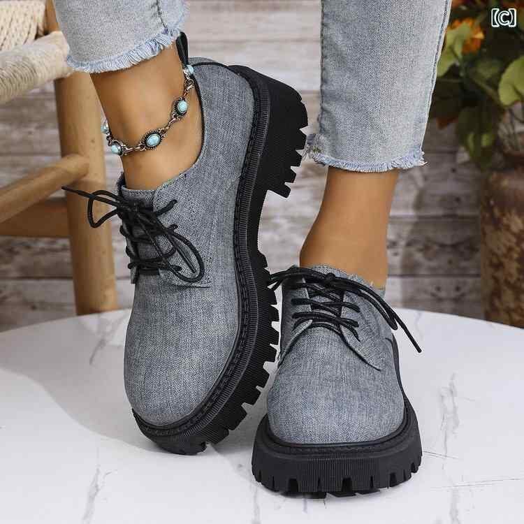ローファー レディース 厚底 プラットフォーム 太ヒール チャンキーヒール レースアップ ラウンドトゥ ブリティッシュスタイル デニム 合成皮革 快適 カジュアル 普段使い 春秋