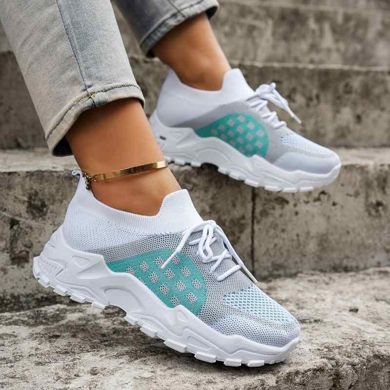 スニーカー レディース ダッドスニーカー 厚底 ローカット 軽量 ソフトソール 快適 カジュアル 学生靴 通学 普段使い レースアップ ラウンドトゥ 通気性 耐摩耗性 ニット ファブリック 無地 ステッチ