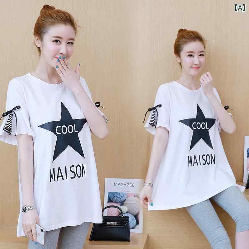 マタニティ セットアップ 春夏 半袖 Tシャツ パンツ 韓国風 ゆったり 綿混 Aライン パフスリーブ ルームウェア ママコーデ カジュアル ホワイト ピンク ブルー
