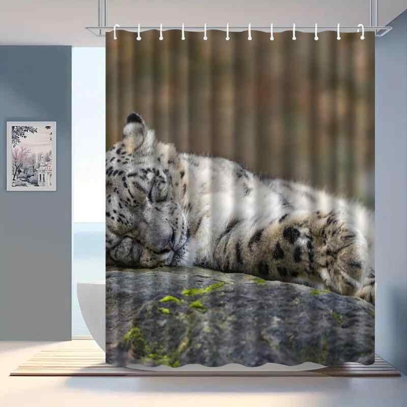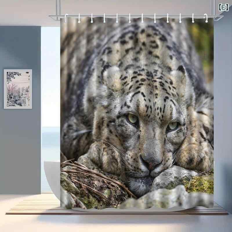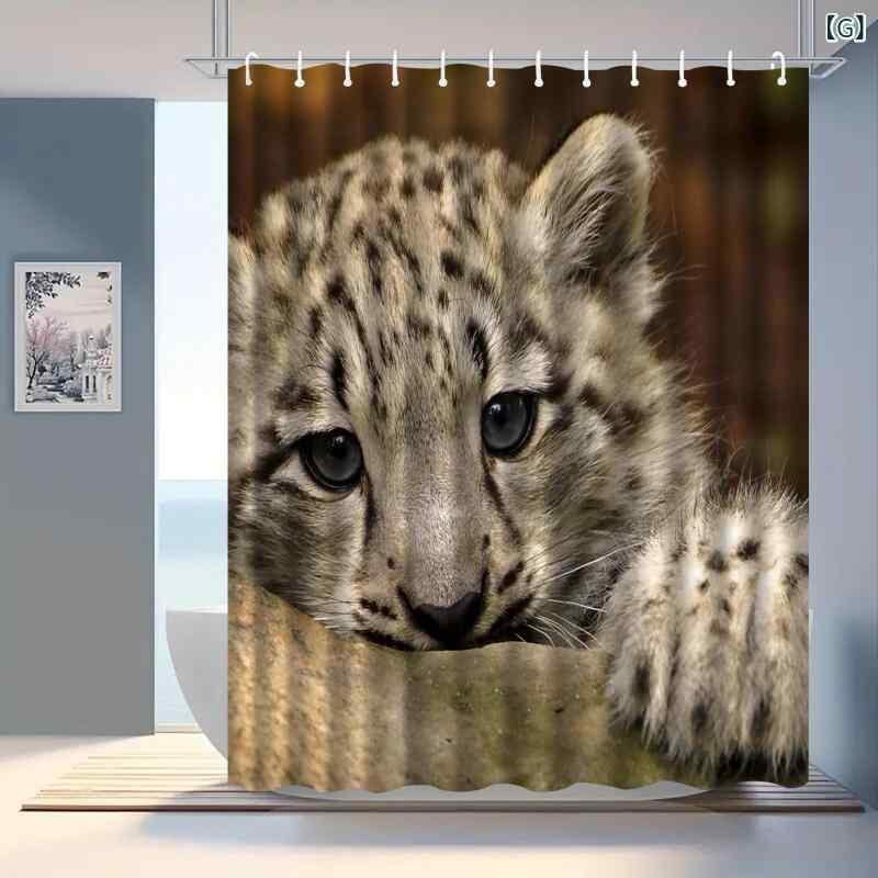 シャワーカーテン かわいい 雪豹柄 スノーレオパード柄 ポリエステル 防水 撥水加工 バスルーム 浴室 お風呂 目隠し 間仕切り