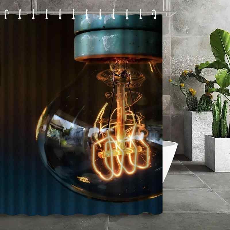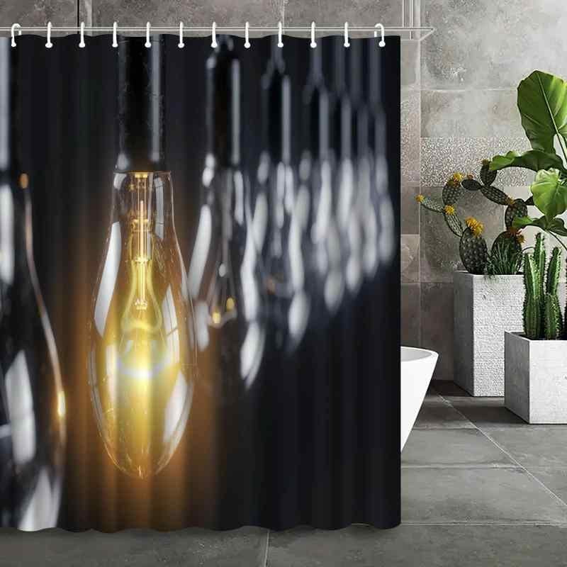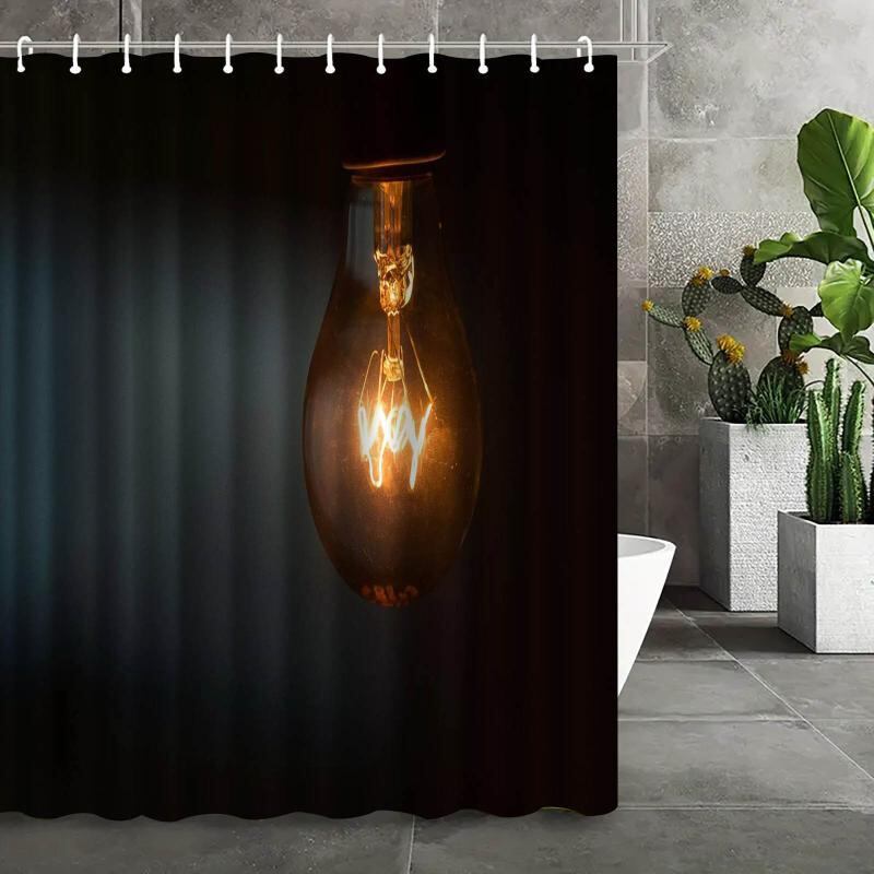 シャワーカーテン 防水 ポリエステル繊維 デジタルプリント 電球柄 浴室 バスルーム 間仕切り 目隠し モダン シンプル 速乾