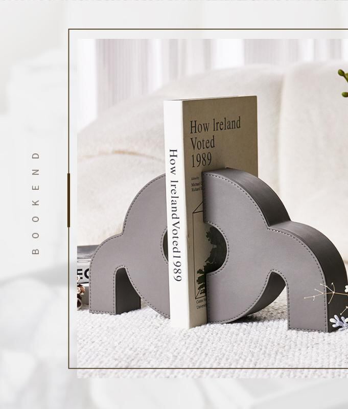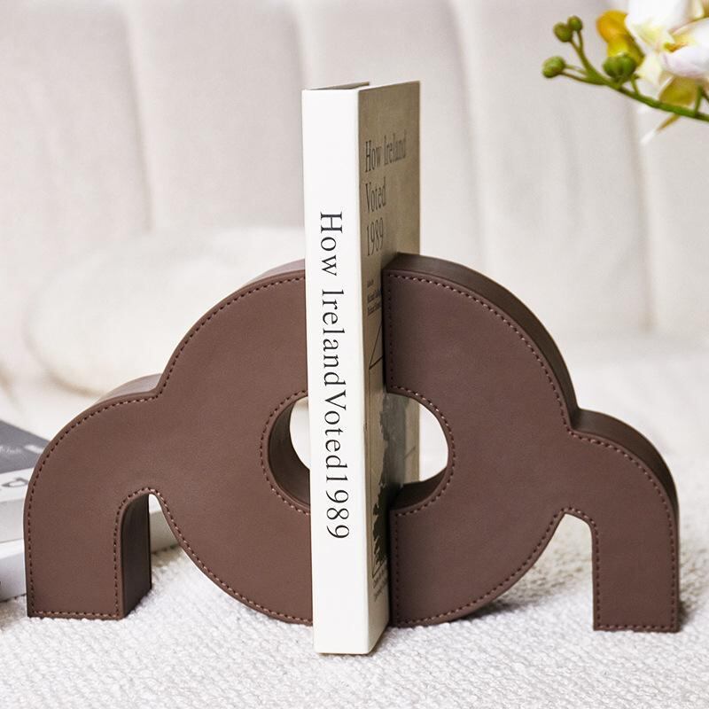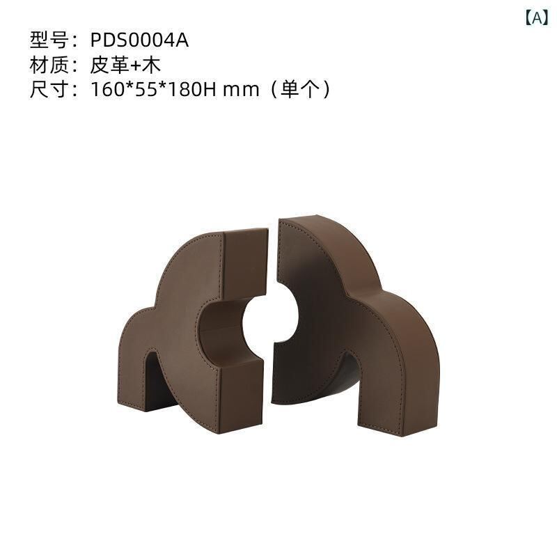 ブックエンド 木製 レザー モダン シンプル おしゃれ 高級感 上質 スタイリッシュ 書斎 オフィス リビング デスク 卓上 本立て 書類整理 インテリア ディスプレイ 飾り 置物 店舗用 テレビ台