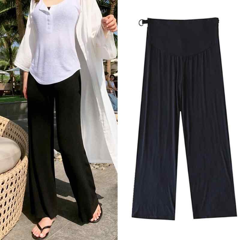 パンツ 妊婦用 ボトムス マタニティ ズボン 綿 モダール混 ストレート 薄手 ゆったり ロング丈 腹帯一体型 高伸縮性 普段使い 部屋着 リラックス カジュアル ブラック 春夏秋