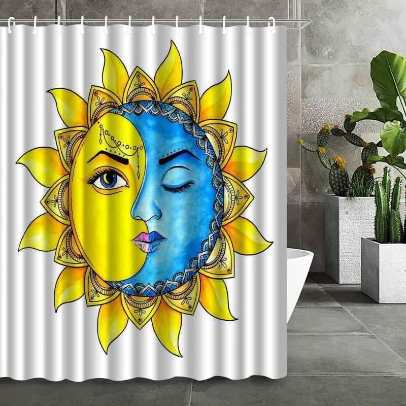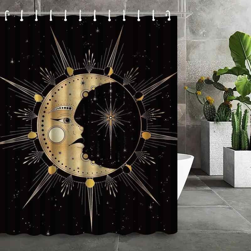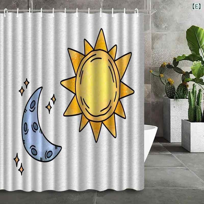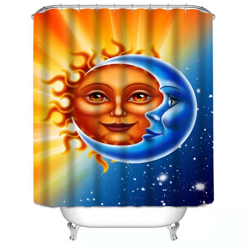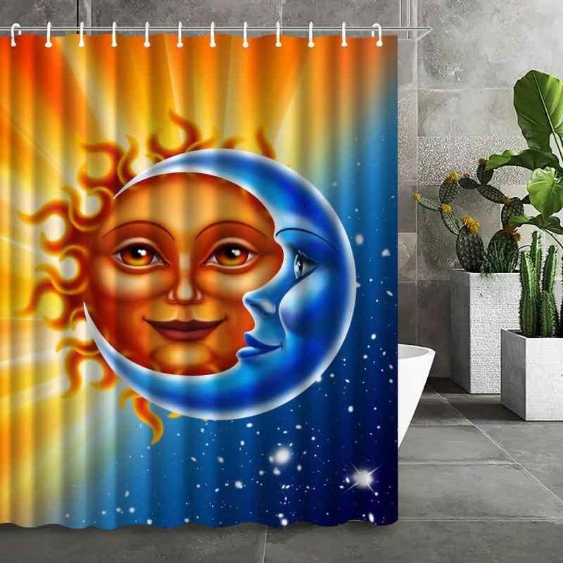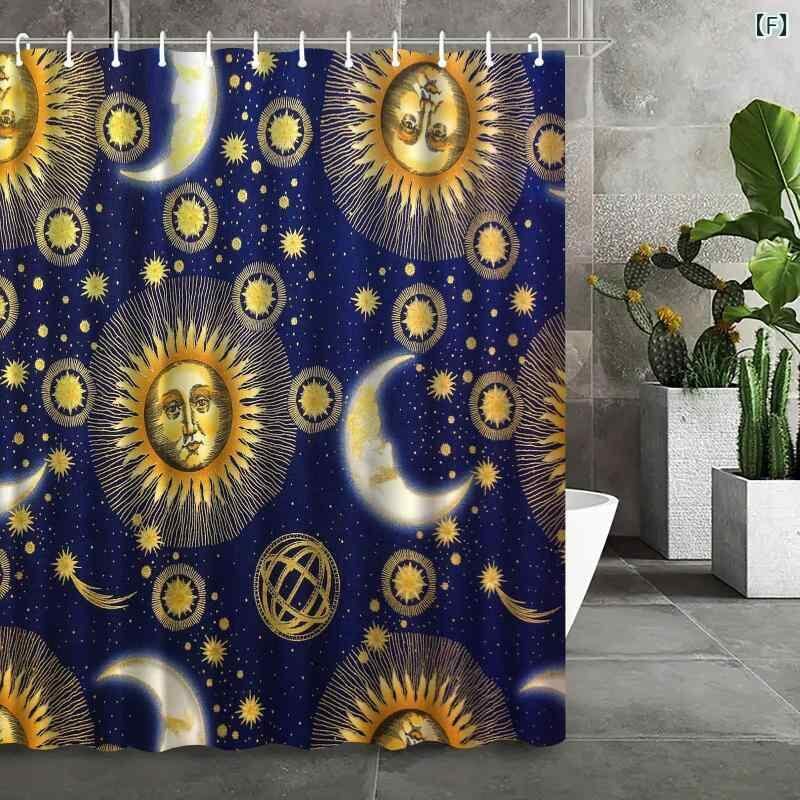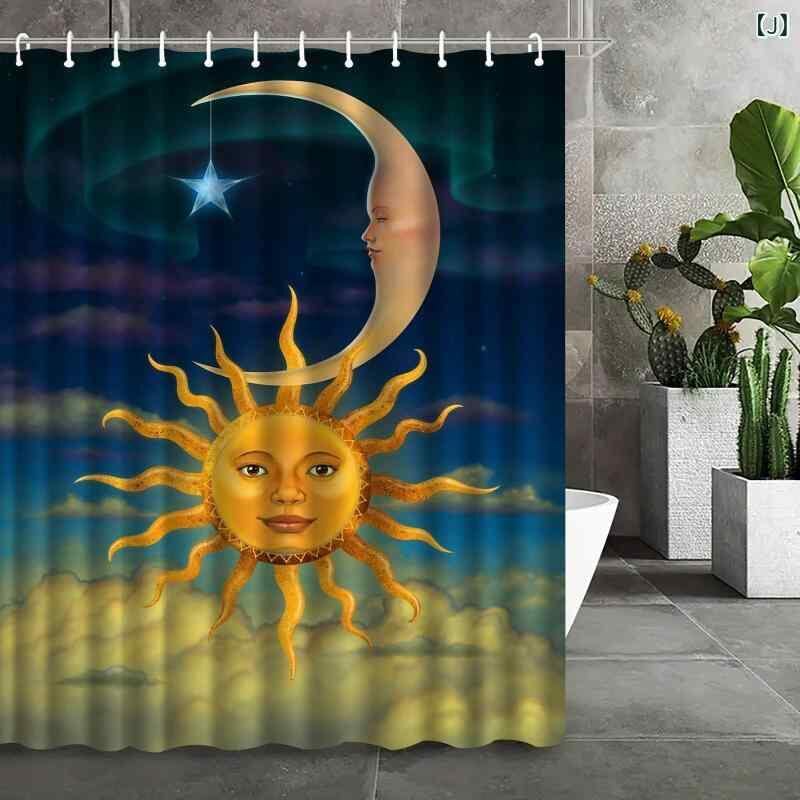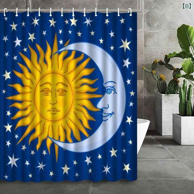 シャワーカーテン バスカーテン 防水 ポリエステル製 太陽と月 宇宙 星空 3Dデジタルプリント バスルーム 浴室 お風呂 目隠し 間仕切り 免打孔 脱衣所