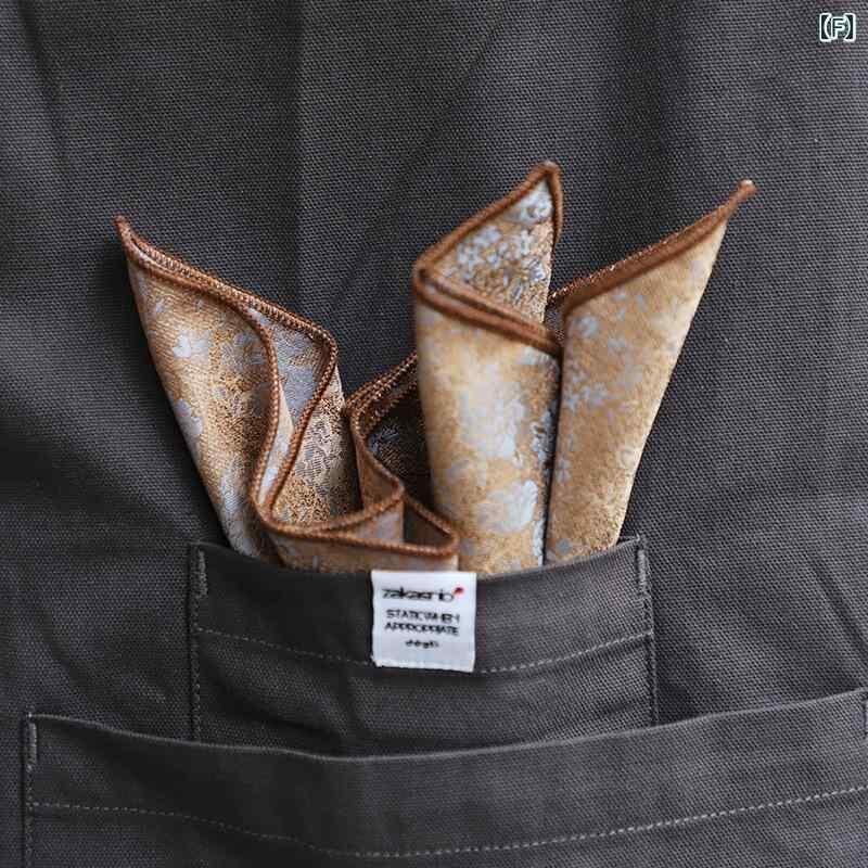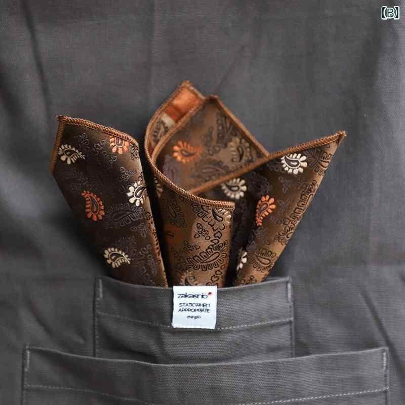 ポケットチーフ メンズ フレンチ レトロ 大柄 花柄 ジャカード織り 暖色系 コーヒーカラー ビジネス フォーマル スーツ