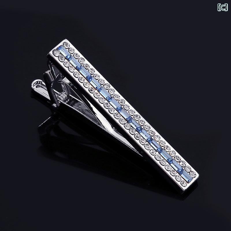 ネクタイピン メンズ 男性用 ビジネス フォーマル シンプル おしゃれ ラインストーン 宝石ブルー クラシック レトロ 個性的 幾何学模様 銅製 タイクリップ