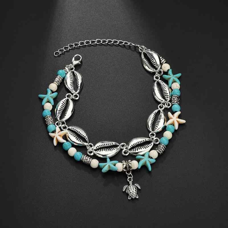 脚飾 レディース アンクレット 欧米風 おしゃれ メタル 合金製 貝殻 ウミガメ ヒトデ チャーム 2点セット 春夏 デイリーユース ファッション小物 カジュアル リゾート