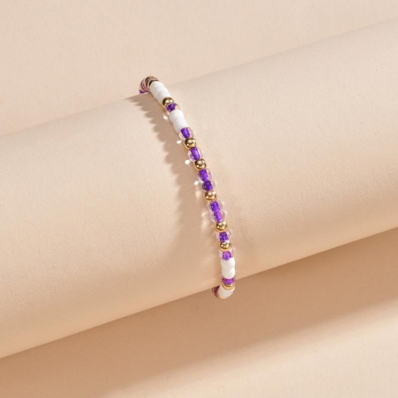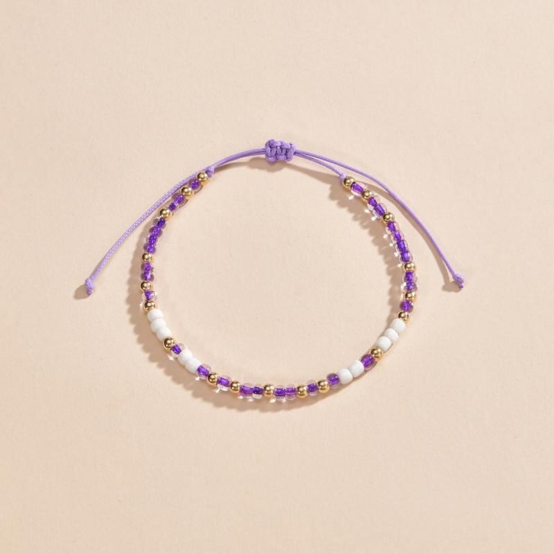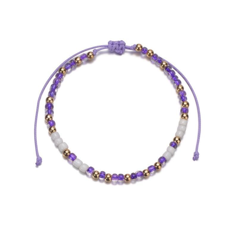 アンクレット レディース ボヘミアン 欧米風 パープル 手編み ビーズ サイズ調整可能 幾何学模様 カジュアル リゾート ファッション 小物