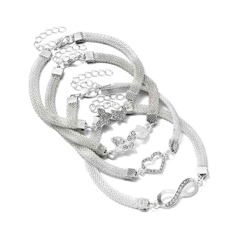 アンクレット レディース 女性用 合金製 チェーン 蝶 ハート 数字の8 無限モチーフ 幾何学模様 アジャスター付き 調整可能 4点セット 春夏 ファッション おしゃれ 普段使い