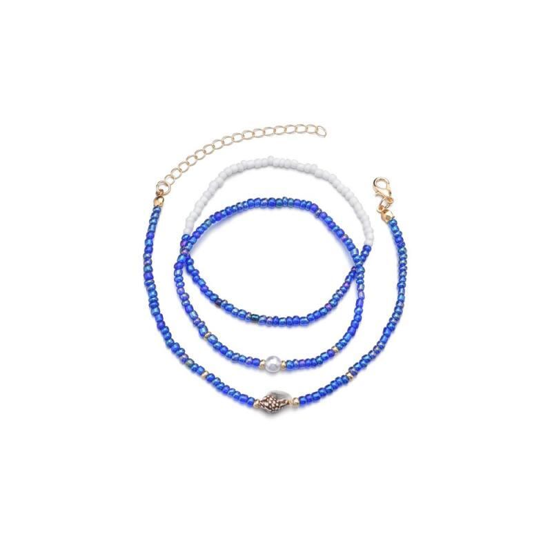 アンクレット レディース ボヘミアン リゾート風 天然 シェル パール パール 米粒ビーズ 伸縮 ゴム 3連 セット ビーチ 夏 バカンス 足首飾り おしゃれ