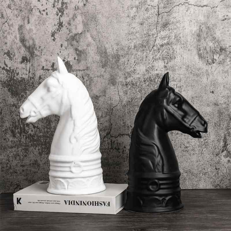 インテリア オブジェ 馬の頭 モダン シンプル ヨーロピアン 樹脂製 黒 白 ブックエンド 書斎 リビング モデルルーム 店舗装飾 飾り