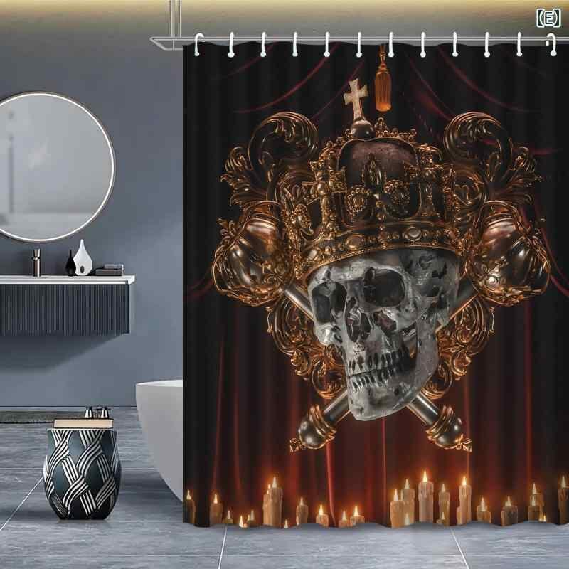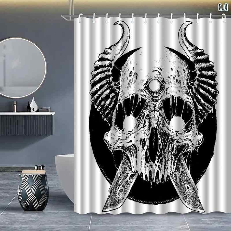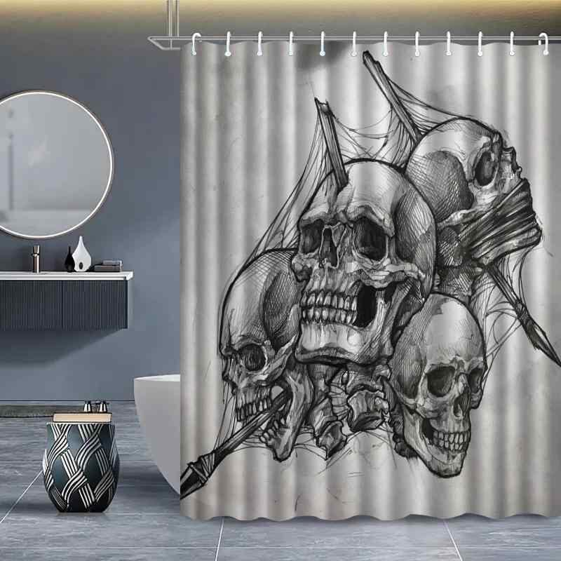 シャワーカーテン 防水 撥水加工 3Dプリント ドクロ柄 スカルデザイン ポリエステル製 速乾 丈夫 バスルーム 浴室 ユニットバス用 モダン ユニーク インテリア