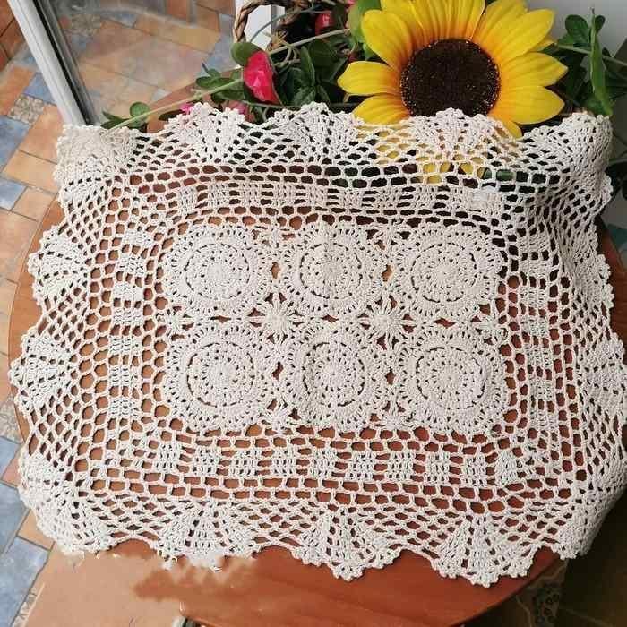 マルチカバー レトロ アメリカン スタイル 綿 コットン 手編み かぎ針編み レース 花柄 透かし編み テーブルクロス ベッドサイドクロス ソファ 肘掛けカバー