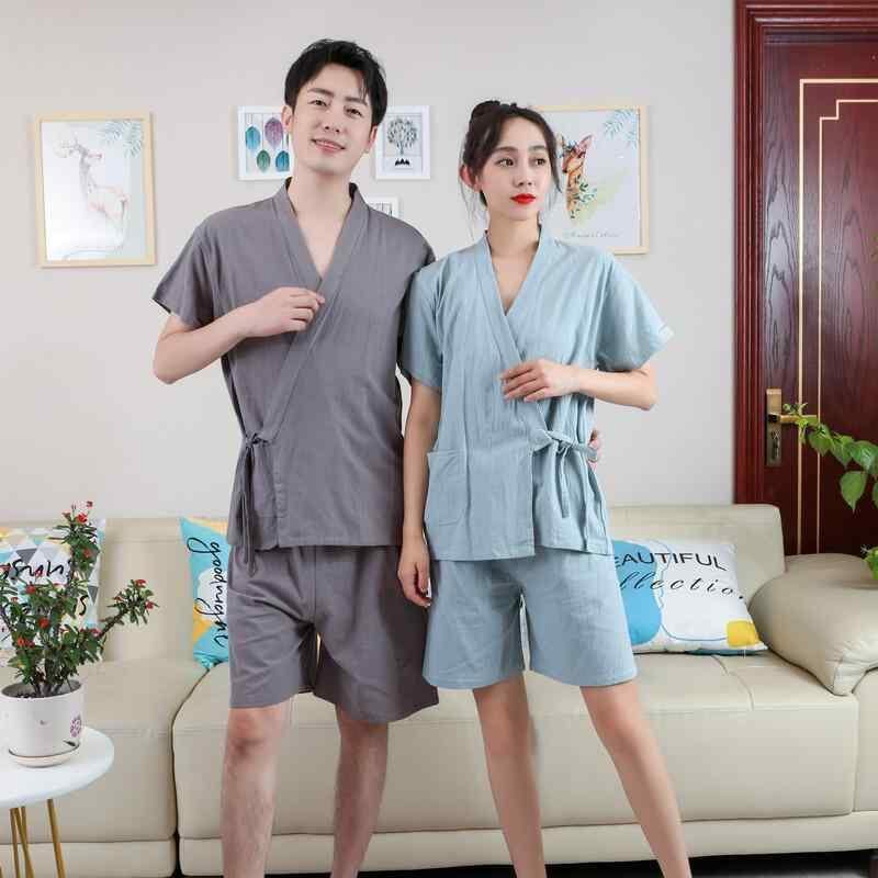 パジャマ リラックスウェア カップル 男女兼用 部屋着 開襟 プルオーバー ガウン スパ マッサージ サウナ 綿混 しわ加工 吸汗速乾 通気性 中厚手