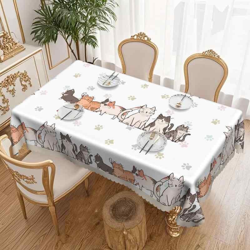 テーブルクロス かわいい 猫柄 猫の足跡模様 ポリエステル製 円形 長方形 ダイニング 食卓カバー 滑り止め 防塵 撥水 耐熱 おしゃれ インテリア 模様替え