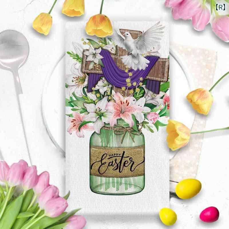 ふきん イースターエッグ うさぎデザイン 超ソフト 吸水性 マイクロファイバー 春 台所用 お手拭き 食器用 クロス
