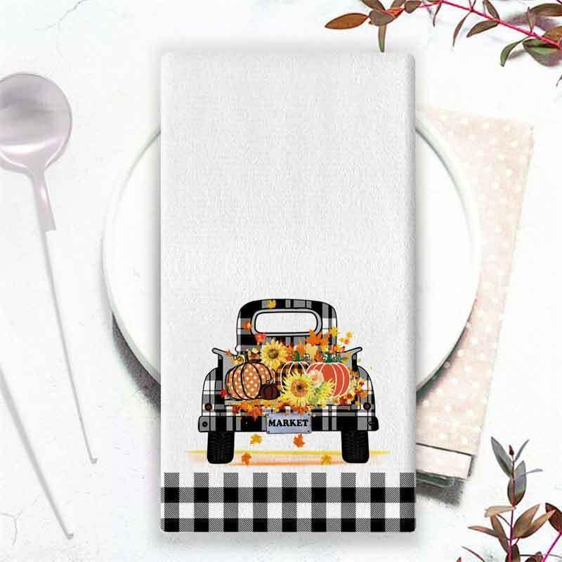キッチンクロス 秋 シーズン マイクロファイバー 吸水 速乾 カボチャ ノーム もみじ トラック チェック柄 プリント おしゃれ かわいい 台所用ふきん 食器拭き