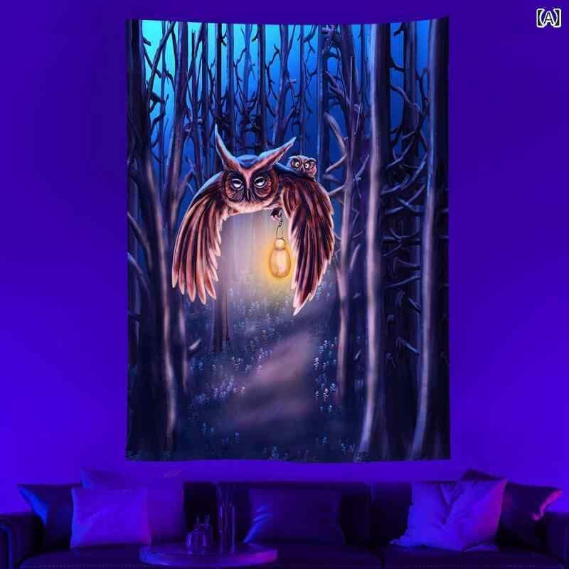 タペストリー 蛍光 ブラックライト対応 UVライト 動物 アニマル 生命の樹 目が光る 壁掛け ウォールアート パーティー バー イベント 装飾