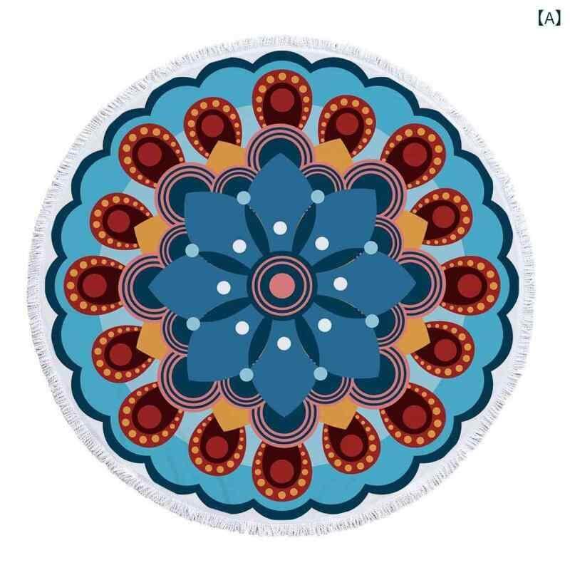 ビーチタオル バスタオル 円形 マンダラ柄 超極細繊維 吸水速乾 大判 軽量 フリンジ付き デジタルプリント 旅行 プール レジャー アウトドア おしゃれ