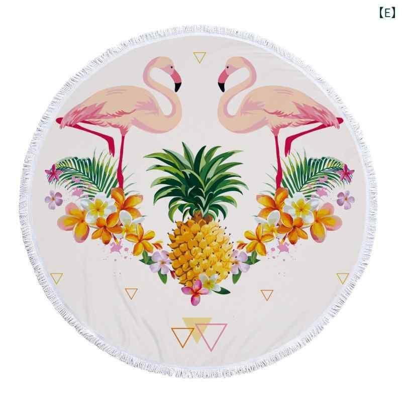 ビーチタオル ビーチブランケット フラミンゴ柄 円形 ラウンド 超極細繊維 マイクロファイバー 吸水速乾 軽量 フリンジ デジタルプリント プール 海水浴 レジャー サマー