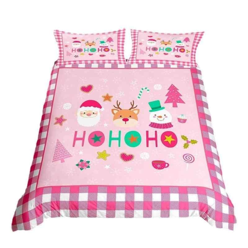 掛け布団カバー 枕カバー ピンク クリスマス トナカイ サンタクロース柄 デジタルプリント ポリエステル 寝具 冬用 寝室 ベッドルーム インテリア