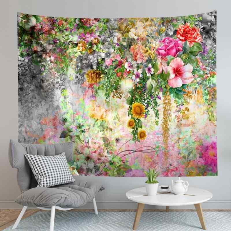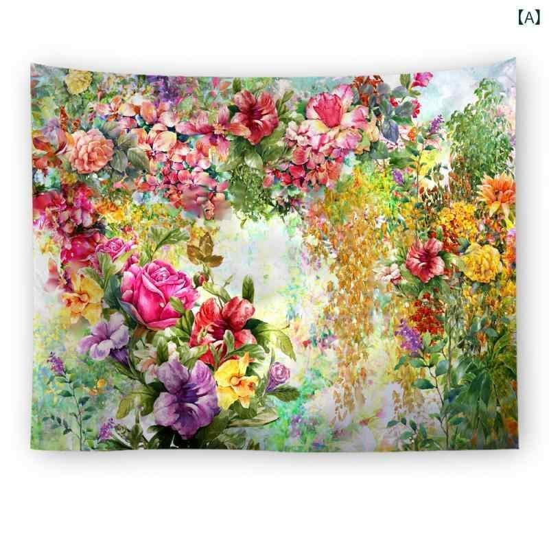 タペストリー 壁掛け 背景布 リビング 寝室 子供部屋 装飾布 花柄 プリント ポリエステル製 正方形 モダン インテリア 間仕切り 目隠し 軽量 多用途