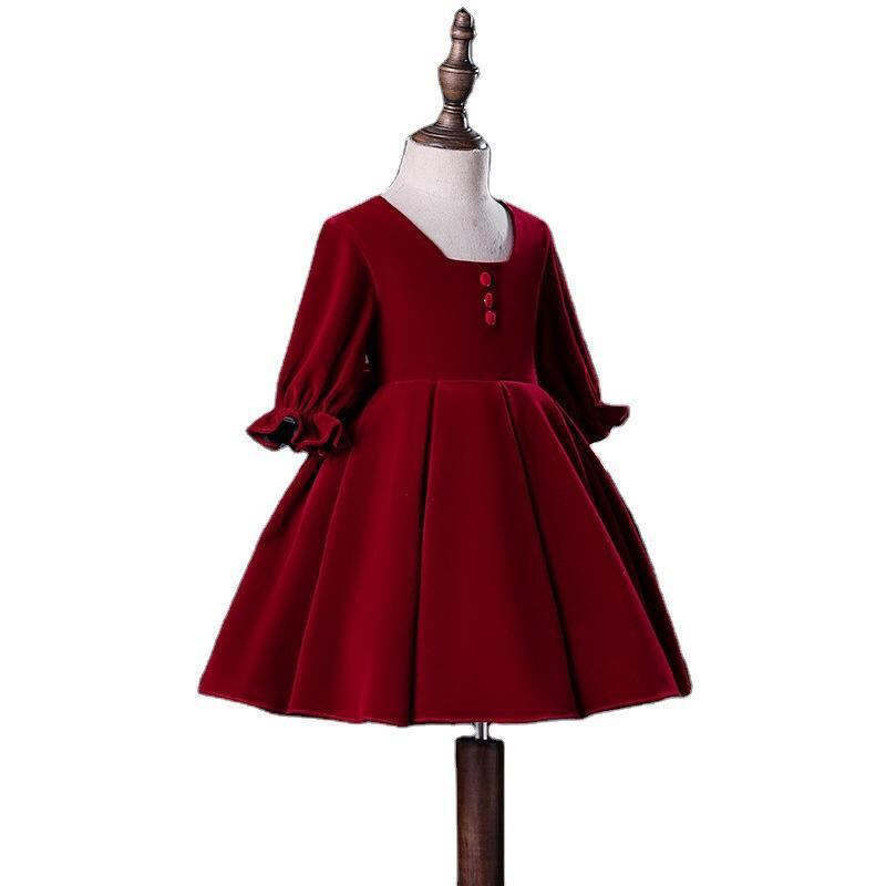 ドレス キッズ 女の子 プリンセス 長袖 ベルベット レッド かわいい フォーマル セレモニー 誕生日 百日祝い 発表会 結婚式 パーティー 上品