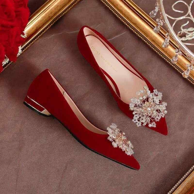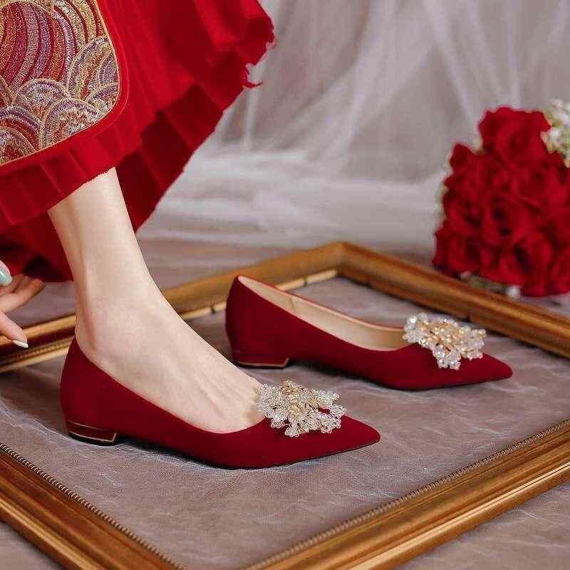 パンプス レディース ワインレッド 結婚式 ブライダル 花嫁 ポインテッドトゥ フラットシューズ ローヒール フォーマル 妊婦 マタニティ 疲れにくい 痛くない スエード調 ラインストーン 通気性