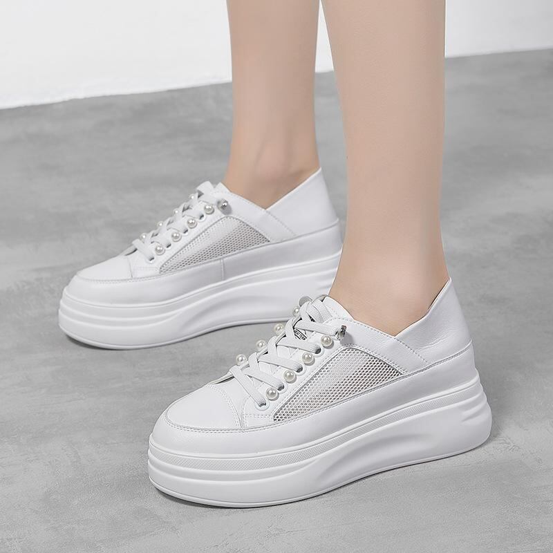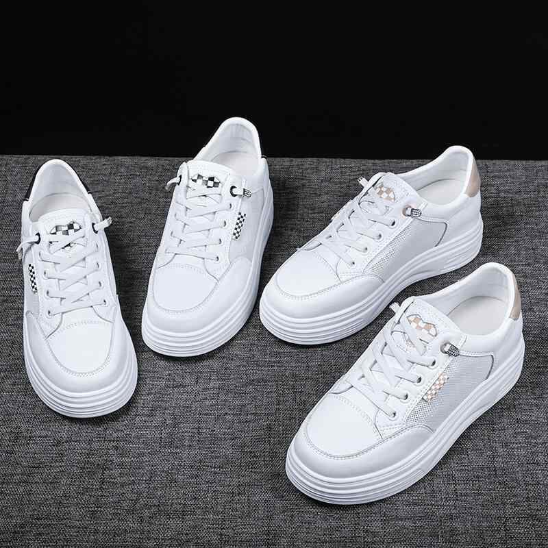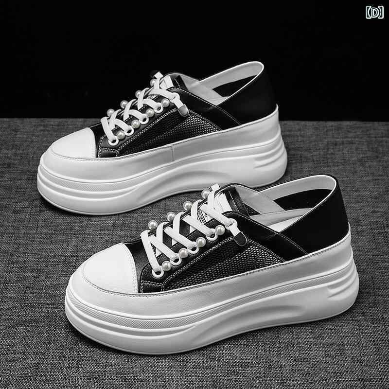 スニーカー レディース 厚底 3-5cmヒールアップ シークレットインソール 牛革 メッシュ 通気性 ラウンドトゥ カジュアル 白 黒 普段使い 通学 デイリー 超繊維 ポリウレタンソール