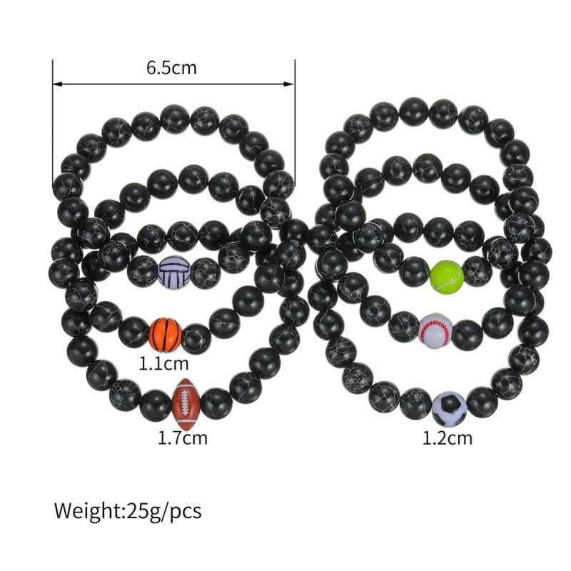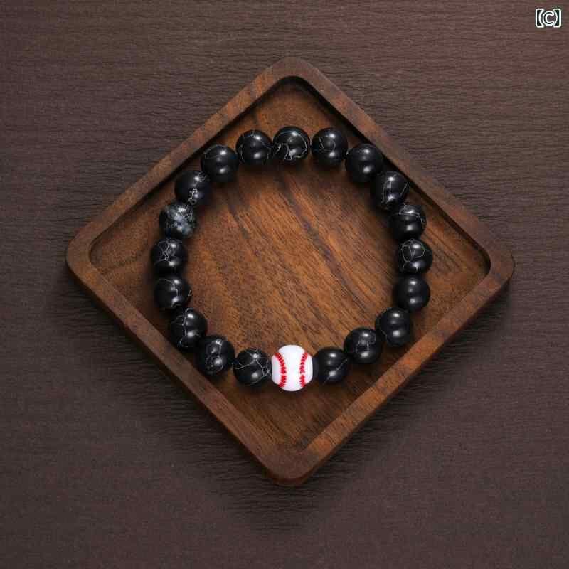 ブレスレット メンズ 男性用 ファッション 個性的 ブラック ターコイズ トルコ石 ラグビー バスケットボール 野球 ボール型 ビーズ 伸縮性 ストレッチ 樹脂製 編み込み カジュアル 普段使い