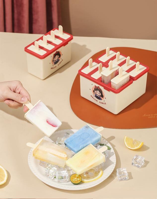 製氷皿 家庭用 食品グレード プラスチック製 蓋付き 4個取り アイスキャンディー 型 アイスクリーム モールド 氷菓 自作 抜きやすい 容器