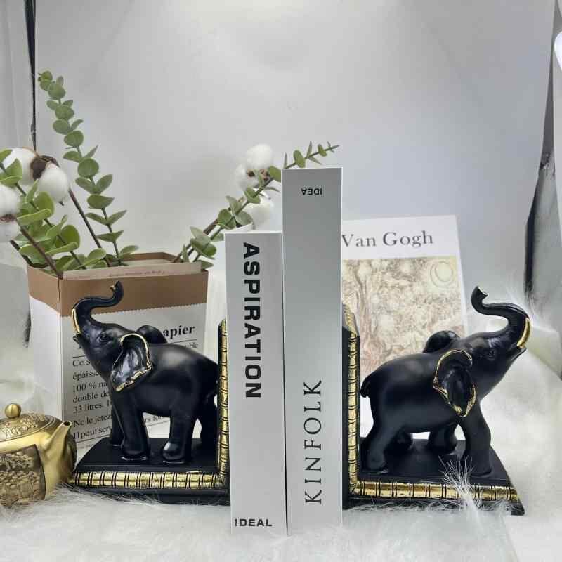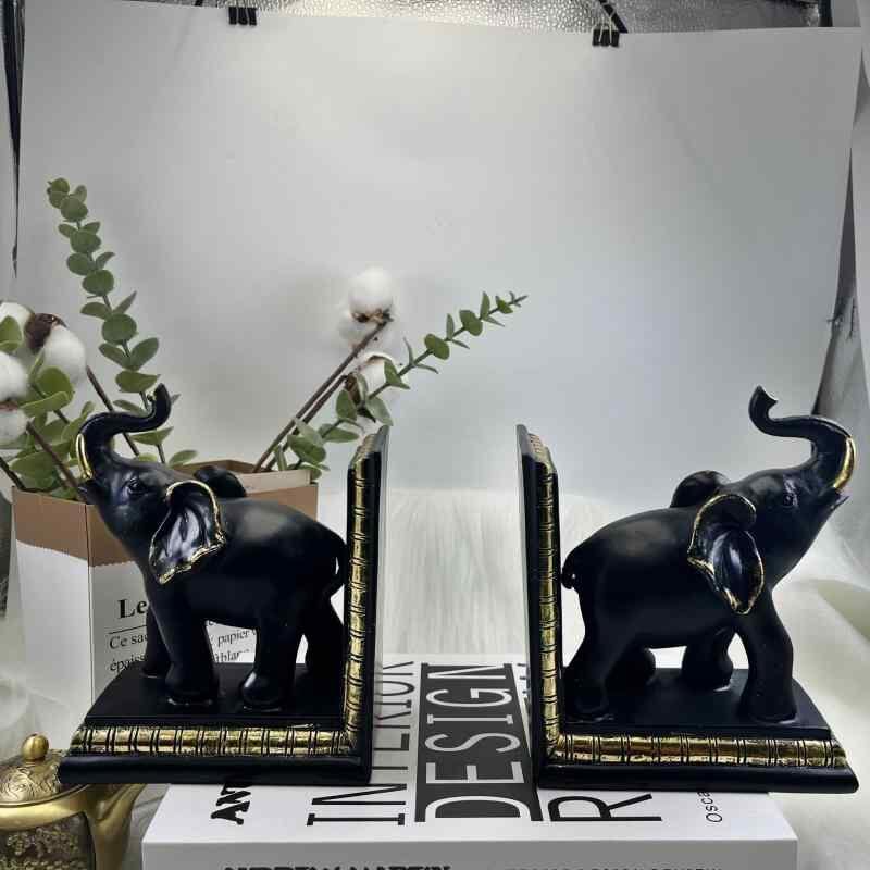 ブックエンド ゾウ 象 樹脂製 安定感 オブジェ 置物 インテリア 禅風 和モダン クリエイティブ ブラック オフィス リビング 書斎 寝室 デスク おしゃれ 飾り