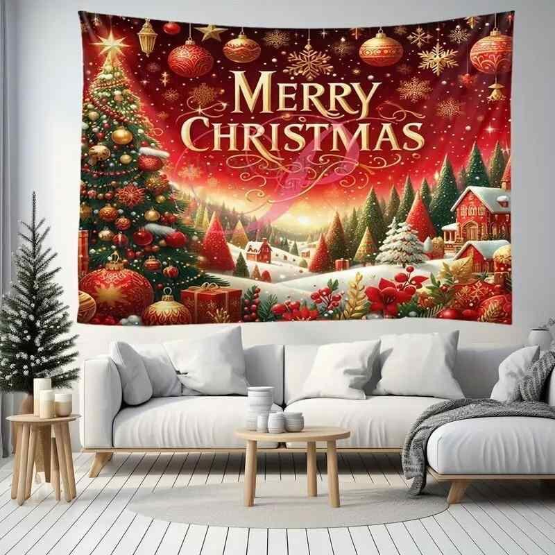 タペストリー クリスマスツリー柄 北欧風 壁掛け ウォールデコ リビング 寝室 部屋飾り ポリエステル製 長方形 カラフル クリスマスデコレーション