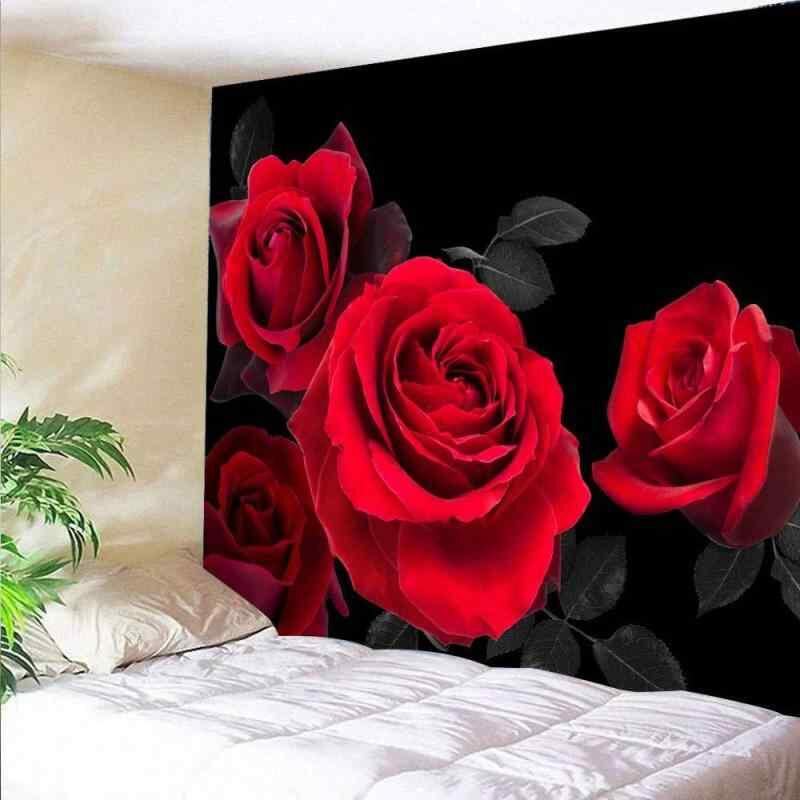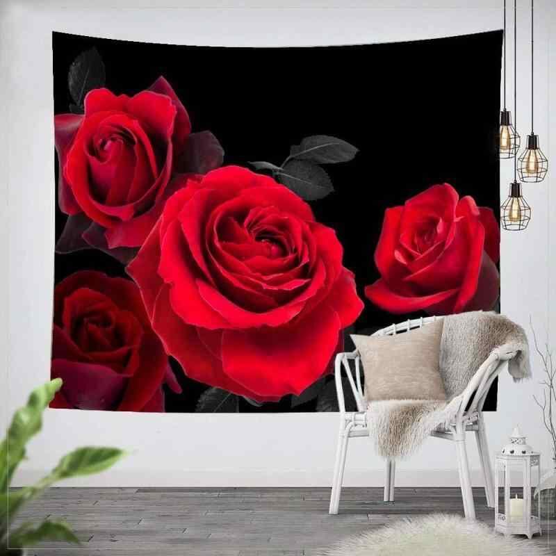 タペストリー レッドローズ 花柄 アートデザイン 長方形 壁掛け ウォールアート おしゃれ 北欧風 リビング 寝室 インテリア 背景布 ポリエステル製 部屋飾り