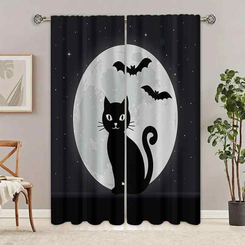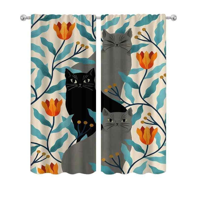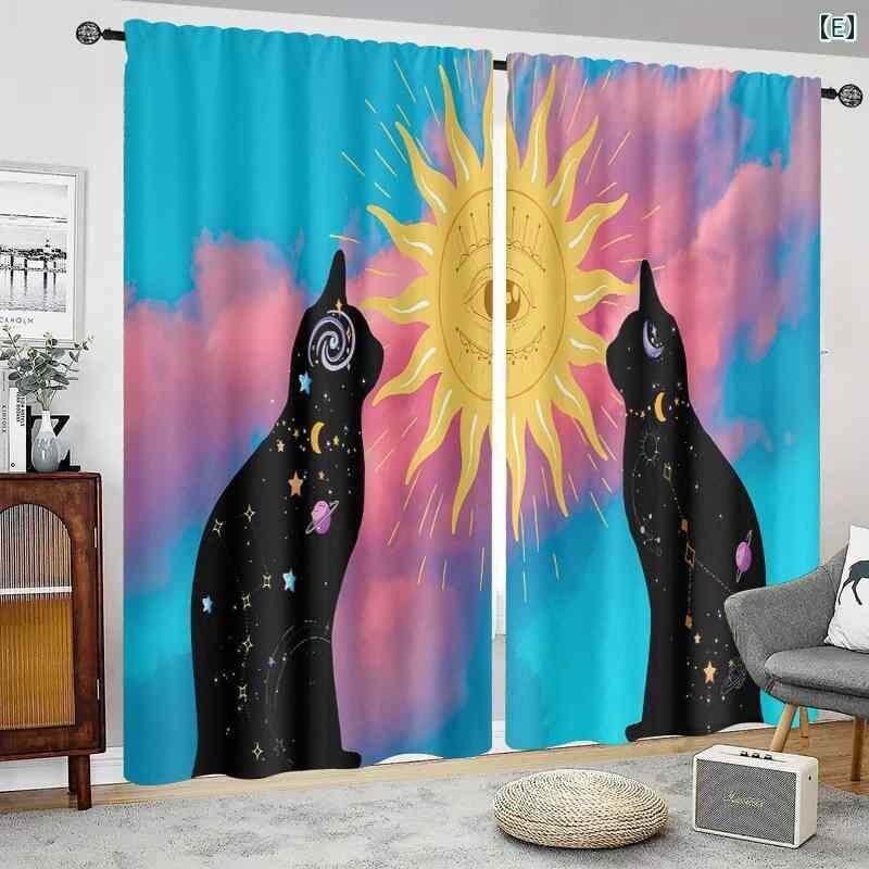 カーテン ポリエステル 防水 防カビ 高遮光 ドレープカーテン カラフル 花柄 月 猫柄 寝室 オフィス キッチン リビング 書斎 モダン シンプル インテリア