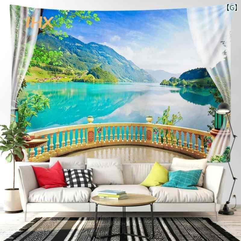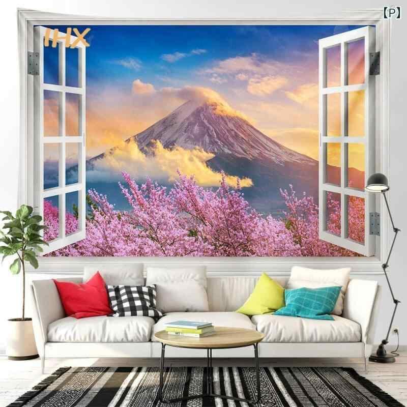 タペストリー 窓景 山水画 自然風景 癒やし 幻想的 壁掛け ウォールデコレーション リビング 寝室 書斎 子供部屋 インテリア ポリエステル 北欧風