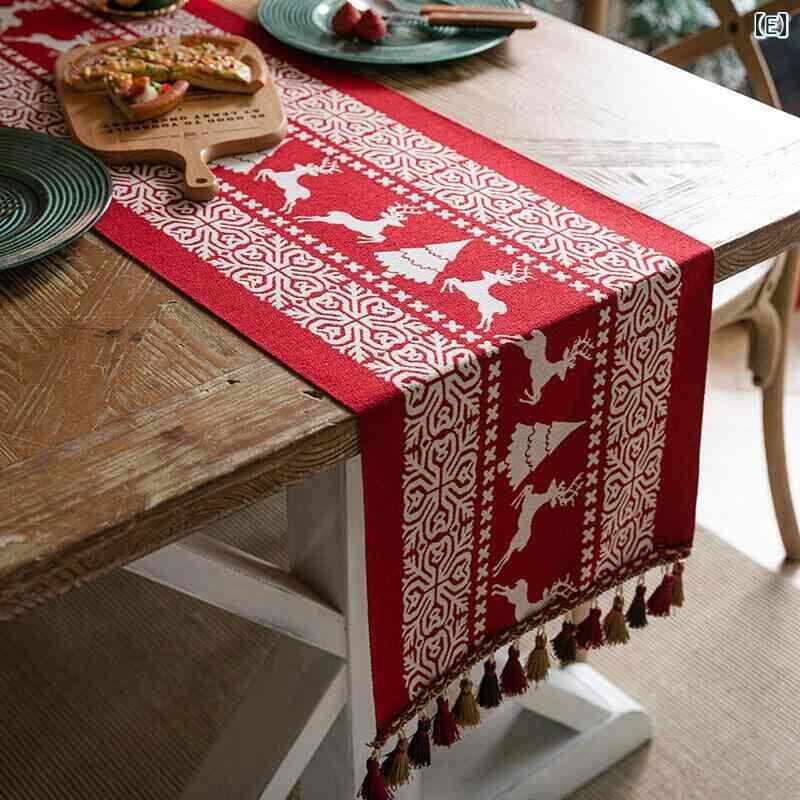 テーブルランナー アメリカンヴィンテージ 高級感 ジャカード織り クリスマス ホリデー柄 パーティー イベント 食卓 デコレーション ポリエステル ロング