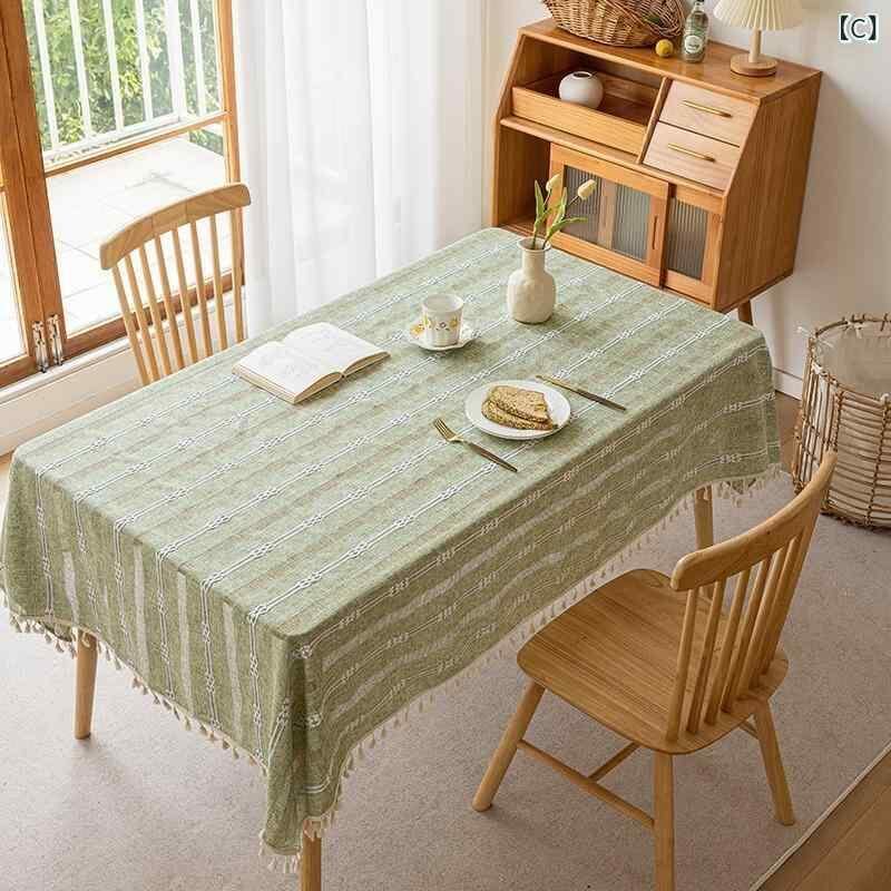 テーブルクロス 北欧風 ダイニング 食卓カバー ジャガード織り フリンジ付き タッセル付き 防水 防油 布製 ファブリック 長方形 ホワイト ライトブラウン ライトグリーン ライトグレー ブルー