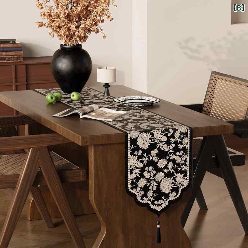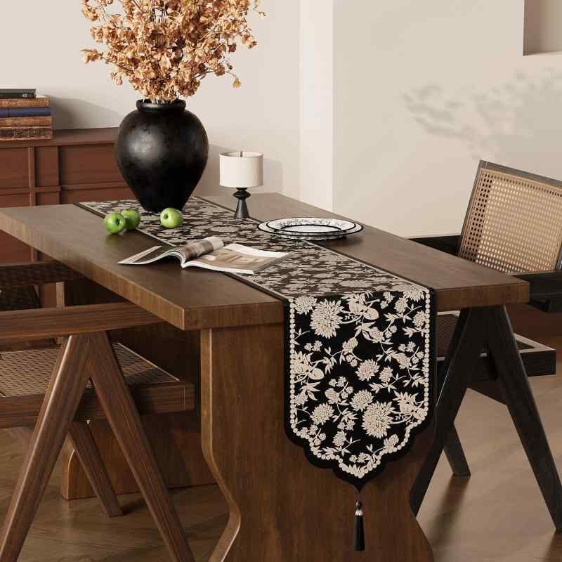 テーブルランナー ヴィンテージ風 レトロ 高級感 リネン 長方形 ボタニカル柄 花柄 ダイニング 食卓 ティーテーブル テレビボード サイドボード カバー アメリカンスタイル