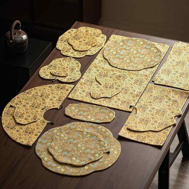 茶席 レディース 新中式 禅意 サテン レトロ 花柄 両面 高級感 ティーマット 乾泡マット 茶器マット テーブルランナー