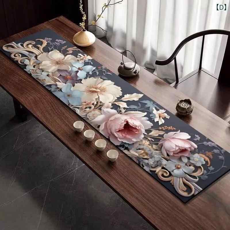 茶器マット テーブルランナー 中国風 吸水速乾 家庭用 高級感 禅風 和モダン ロング 長方形 お手入れ簡単 ウォッシャブル 梅柄 鳥柄 エレガント 上品 リビング ダイニング インテリア
