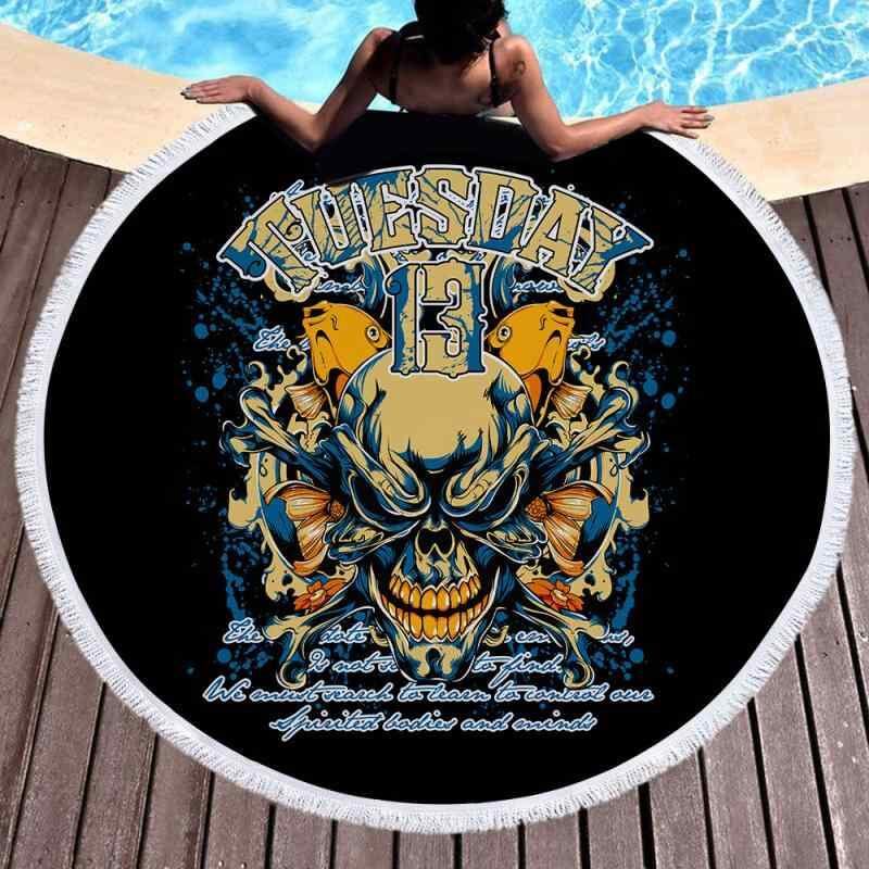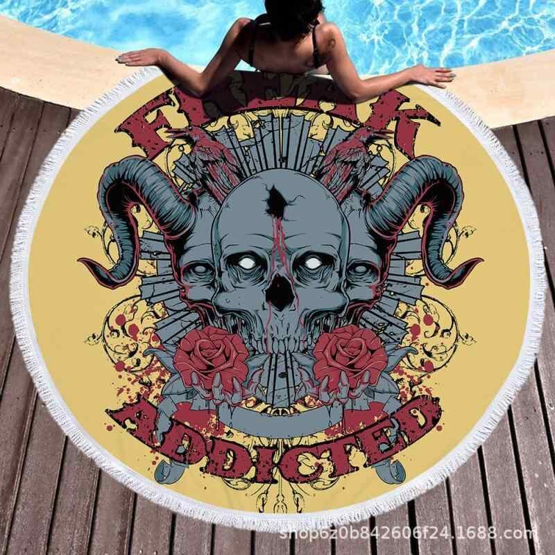 ビーチタオル 円形 マイクロファイバー 速乾 吸水性 大判 スカル柄 海水浴 プール 旅行 アウトドア サマーブランケット ショール レジャーシート ポリエステル 夏