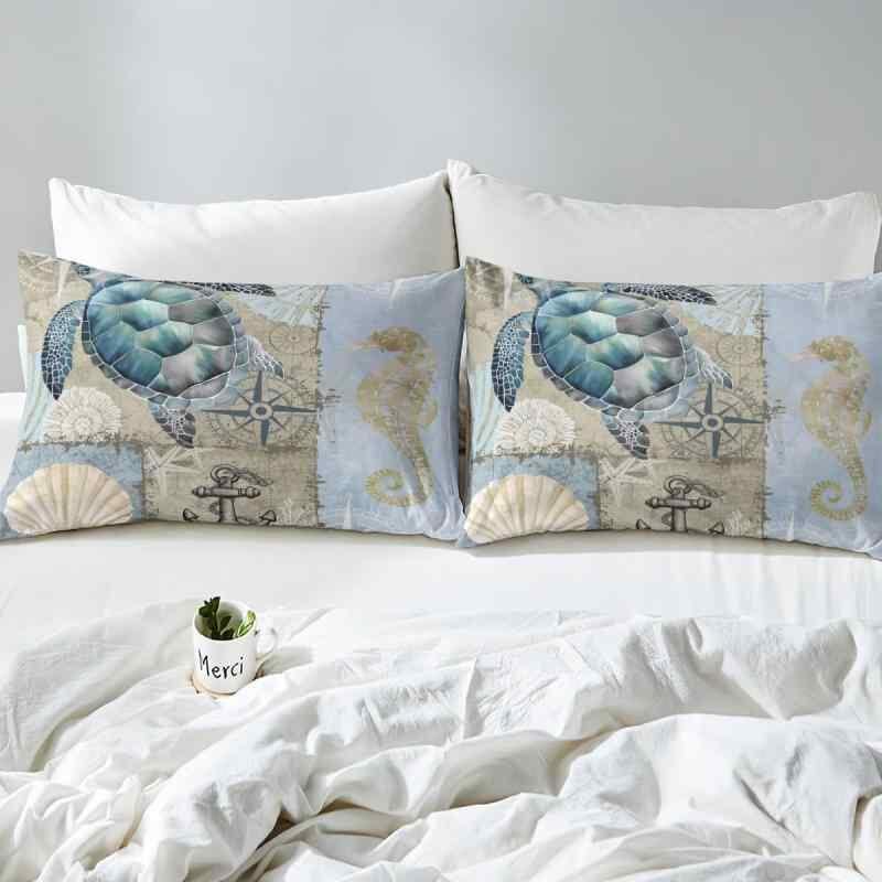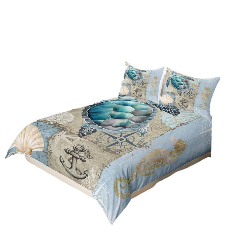 布団カバー 枕カバー 海洋生物 マリン 海亀 貝殻 ヒトデ 珊瑚 レトロ ヴィンテージ モダン シンプル ポリエステル デジタルプリント 2点セット 3点セット 寝具セット ベッドルーム用