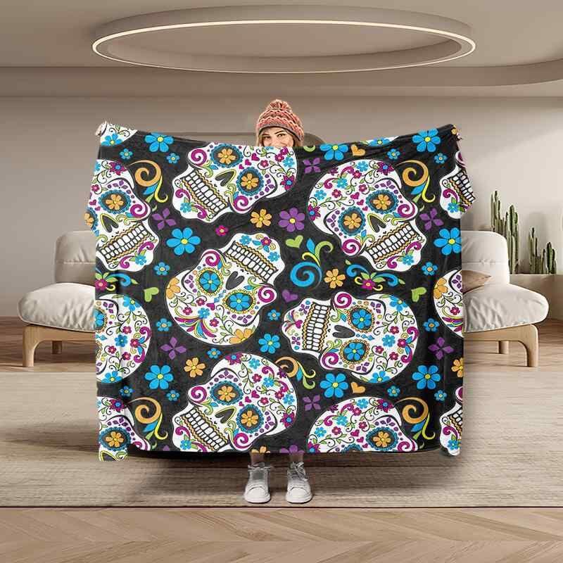 ブランケット フランネル グラフィティ スカル クール プリント お昼寝 ひざ掛け ソファカバー ベッドスロー マルチカバー 冷房対策 オールシーズン