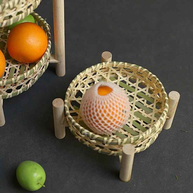 菓子皿 フルーツバスケット 竹製 二段 一段 木製スタンド プレート 手作り 家庭用 ティータイム お茶菓子入れ 乾燥果実 カフェ風 かわいい おしゃれ ナチュラル リビング ダイニング