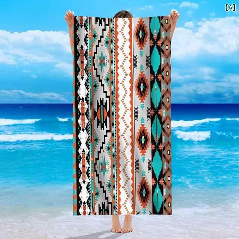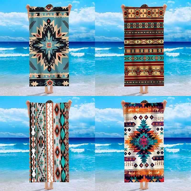 ビーチタオル マイクロファイバー 南西部 ナバホ アステカ 幾何学模様 花柄 多用途 海水浴 プール 旅行 アウトドア レジャー 大判 軽量 吸水速乾 薄手 ソフト 春夏